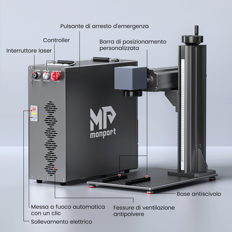 Incisore e marcatore laser a fibra ottica Monport GT 30W con messa a fuoco automatica (5.9“ x 5.9”)