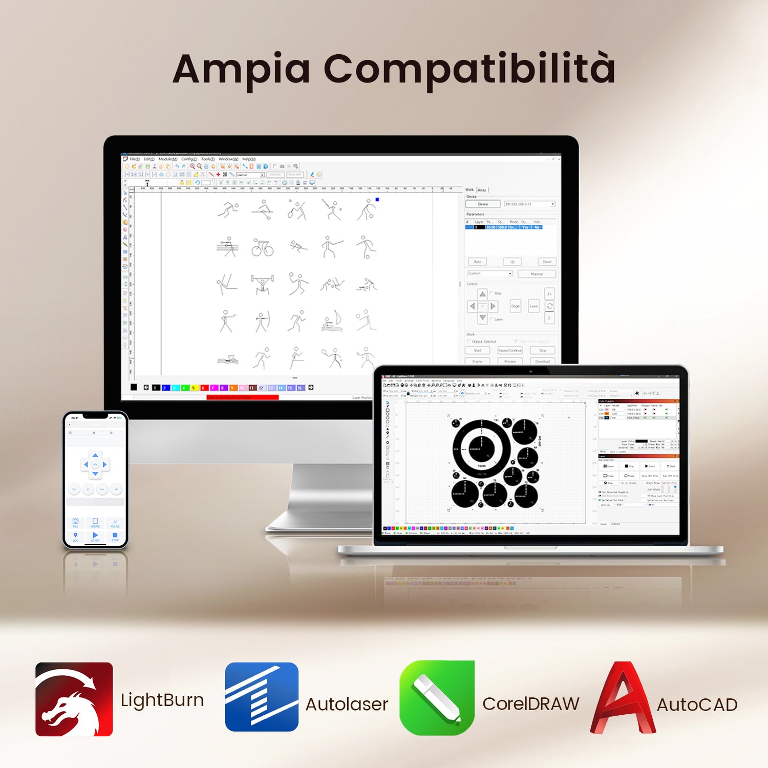 Software compatibile: CorelLaser,Whisperer,LaserDRW,WinSealXP,mLaserArt(ivk),Meerk40t