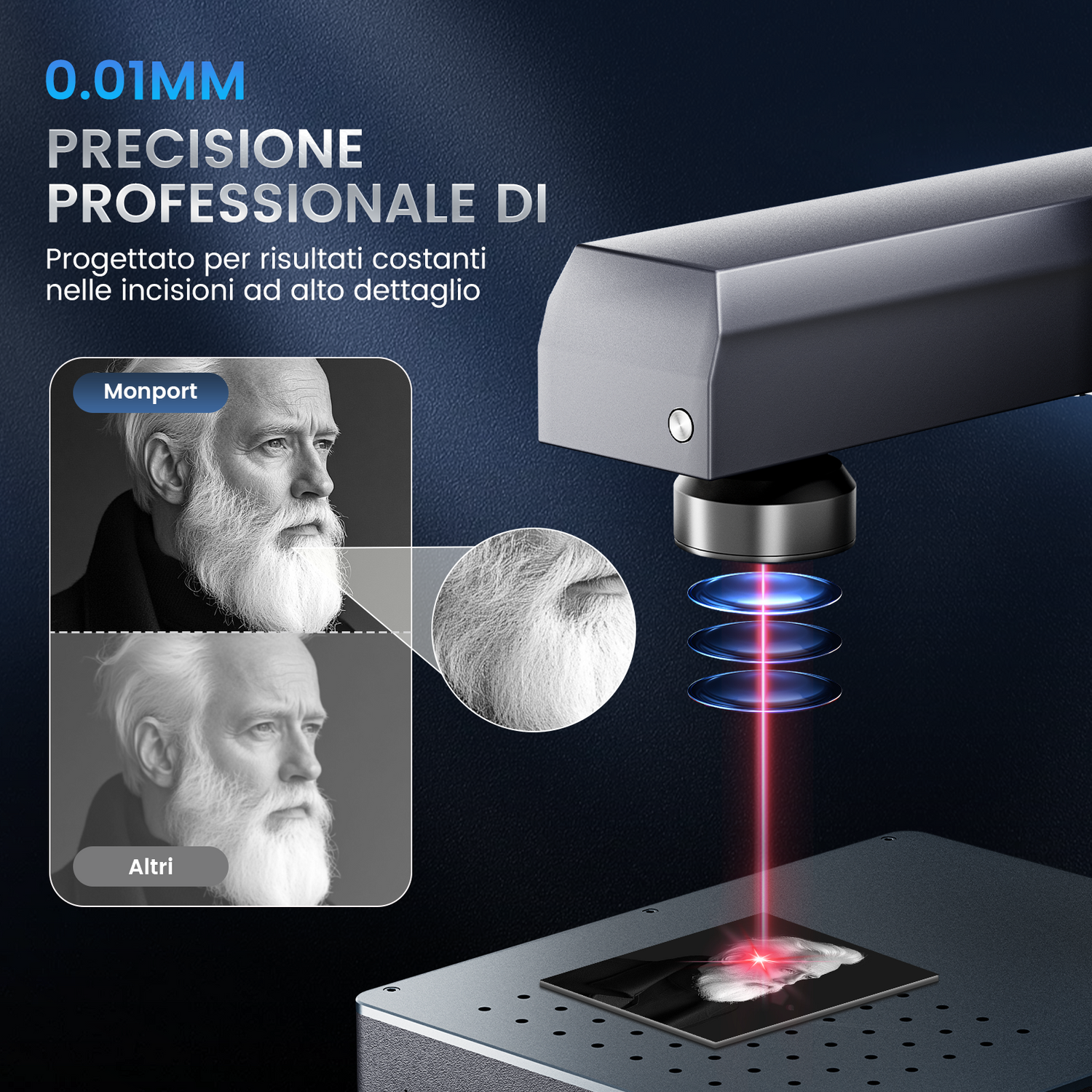 Macchina per incisione e marcatura laser a fibra integrata Monport GM 50W Pro con messa a fuoco automatica - Macchina