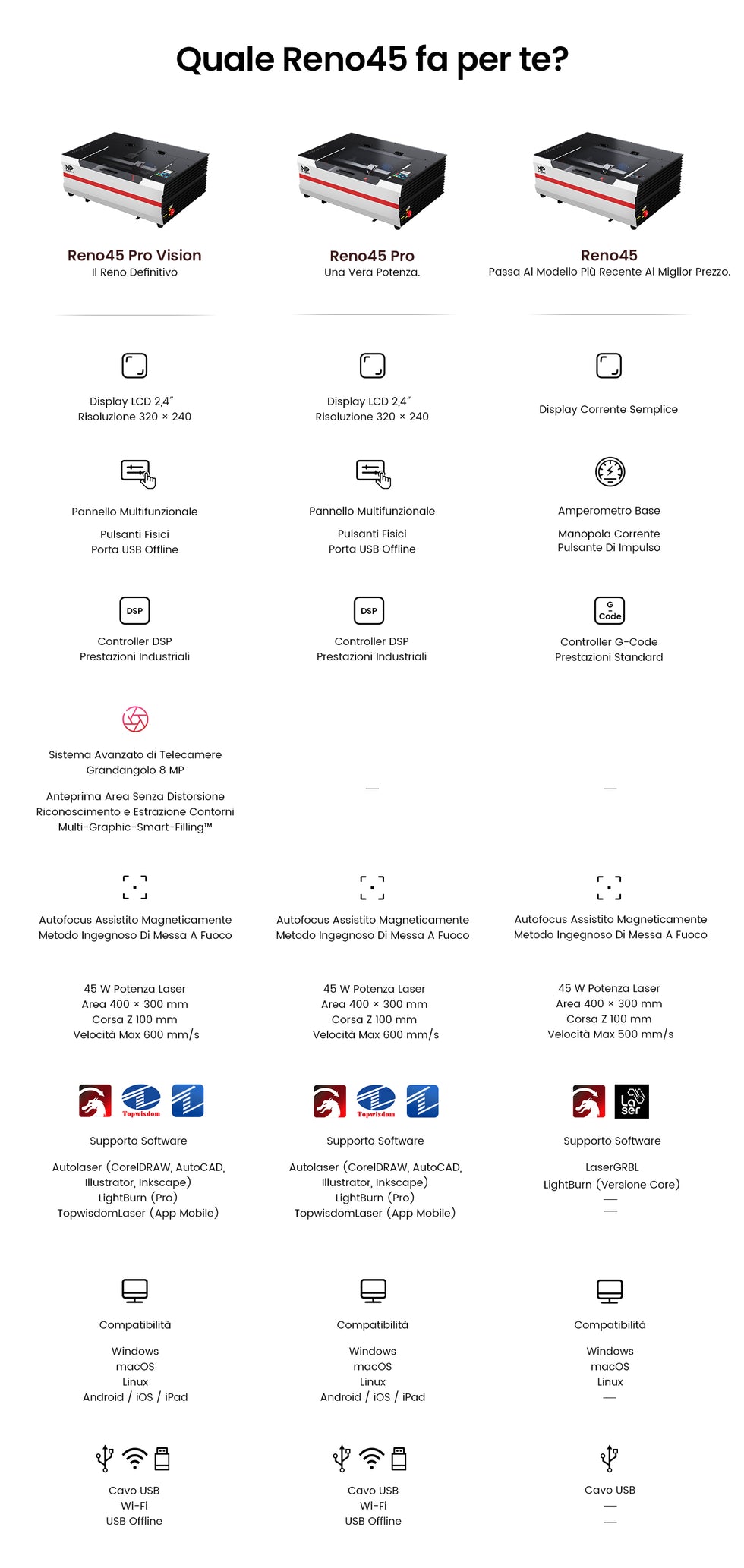 Caratteristiche del laser Reno 45W Pro Vision CO2