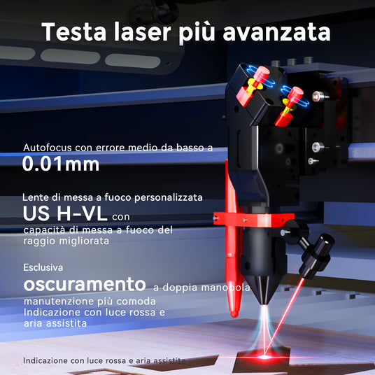 Con funzionalità di protezione complete tra cui protezione dall'acqua, supporto aereo, allarmi di temperatura, protezione del coperchio e interruttore di arresto di emergenza, puoi incidere in tutta tranquillità sapendo che la tua sicurezza viene sempre al primo posto.