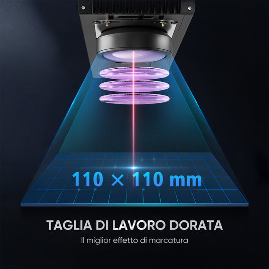 Area di incisione: 4,3 x 4,3 pollici, 110 × 110 mm